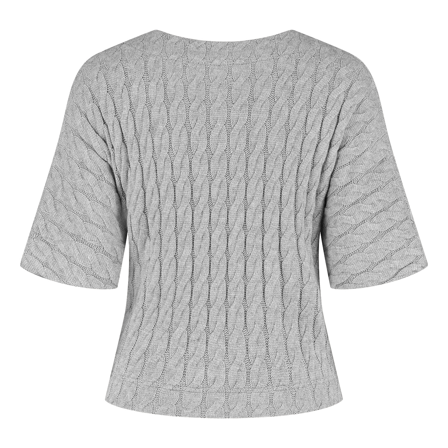 Top met ronde halslijn en een raglan korte mouw. De top is oversized van pasvorm en is gemaakt in een fijn gebreide kwaliteitsstof met kabelpatroon.