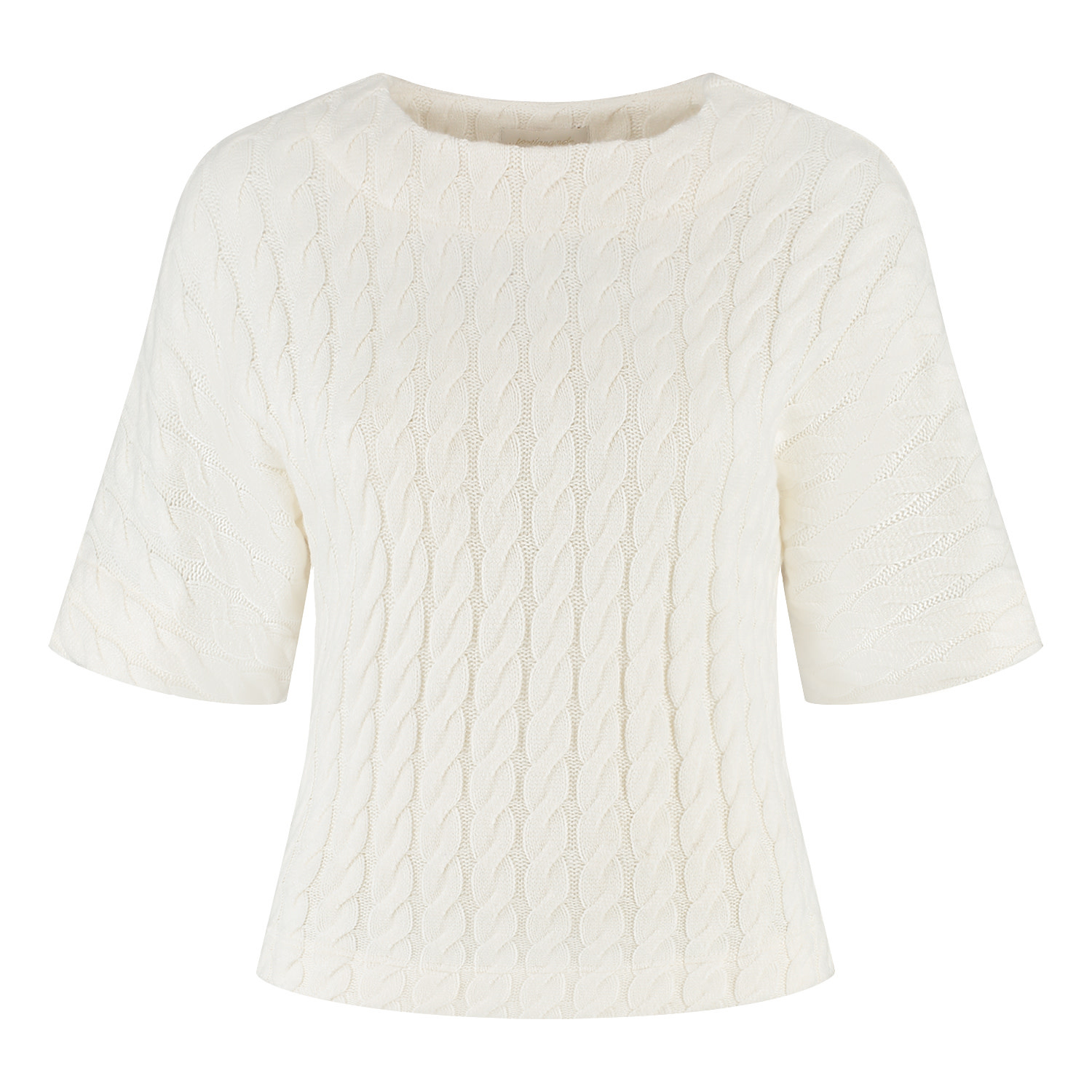 Top met ronde halslijn en een raglan korte mouw. De top is oversized van pasvorm en is gemaakt in een fijn gebreide kwaliteitsstof met kabelpatroon.