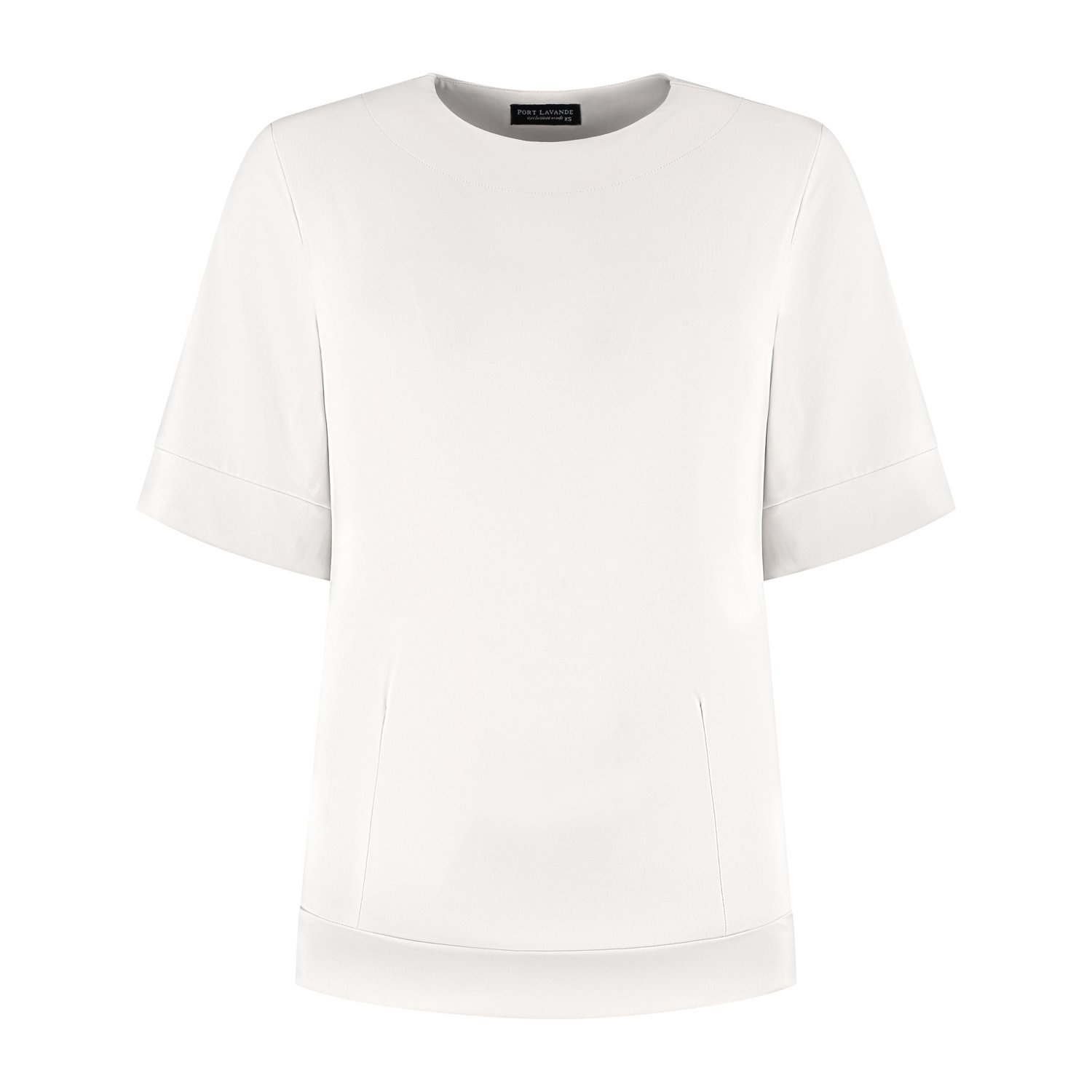 Deze top van Port Lavande heeft een rustige uitstraling en heeft een minimalistisch design. De offwhite tint is makkelijk te combineren en past zowel bij een nette als casual outfit. Deze top heeft een ronde halslijn en een oversized korte mouw en voor de perfecte pasvorm, figuurnaden en een boordje langs de onderrand. Deze top is gemaakt in een mooie stevige travel kwaliteitsstof.