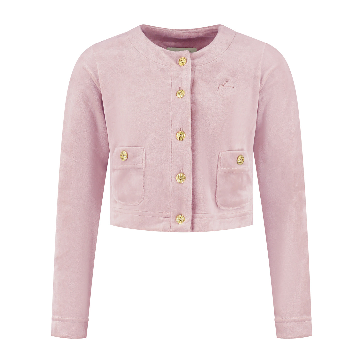 Vestje met ronde halslijn en knoopsluiting vooraan. Het vestje heeft een klein ton sur ton PL borduurtje op de borst en twee zakjes met knoopjes op de voorkant. Het vestje is kort en is iets losvallend van pasvorm. Dit vestje is gemaakt in een fluweelzachte velvet kwaliteitsstof.